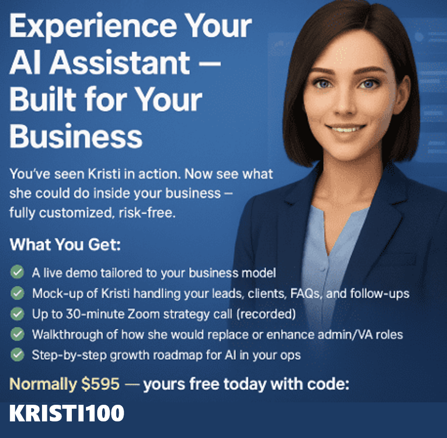 ... Let us introduce Kristi, your very own AI Assistant that works 24/7/365, providing better customer Support and getting more sales for your business. You can call the phone number listed here to hear Kristi calculate your Missed Call Revenue Potential, and then read below about testing this AI Agent for free.